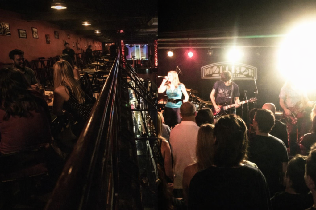 Bar de rock com palco bem próximo do público